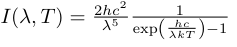 温度T[K]の黒体が放射する単位波長あたりの放射強度(intensity)I(J/m^2 s str m)は,